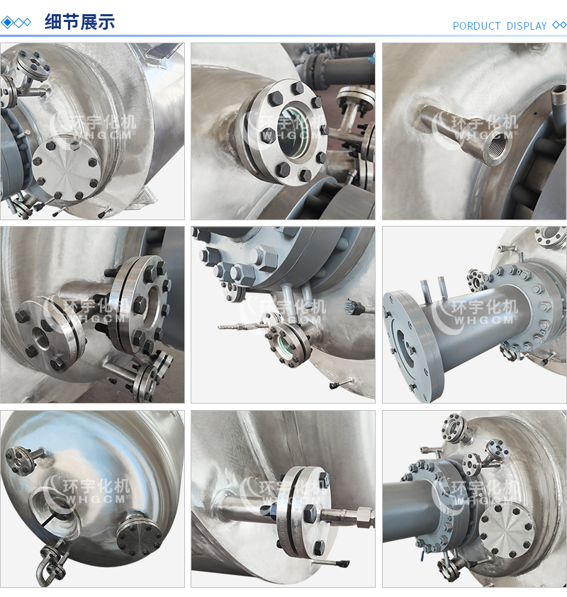 其他附件 如果用戶在釜蓋、釜體開口、內(nèi)部結(jié)構(gòu)、壓力高低、攪拌槳葉、及增加其他輔助裝置(如冷凝回流裝置、冷凝器、恒壓加料罐、接收裝置)等有特殊要求,可完全按用戶的要求加工制造